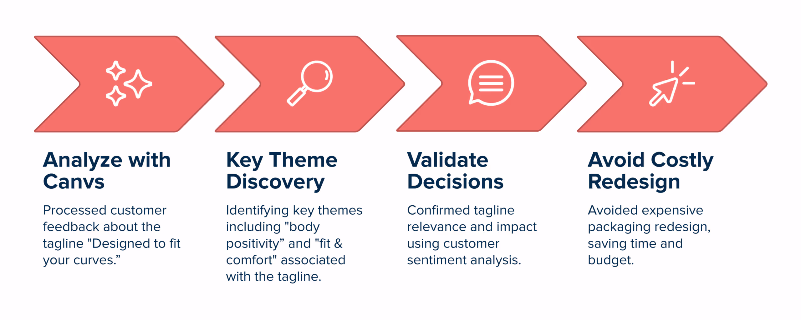 Another critical application of Canvs was evaluating consumer responses to the tagline "Designed to fit your curves." The team needed deeper insights into how it resonated with audiences and whether any changes to the messaging were truly necessary.