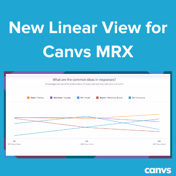 Linear view will automatically be applied to multi-wave projects as the default data visualization, and users have the ability to switch from linear view to the familiar Canvs treemap. The linear view visualization is also customizable, allowing users to select which metrics they want to see charted, as well as to add cross-tab filters. Additionally, like all elements of the Canvs content page, linear view is interactive. Users can filter data by simply clicking on a datapoint in the visualization to further explore the data and see the specific open-ended text generating the result.