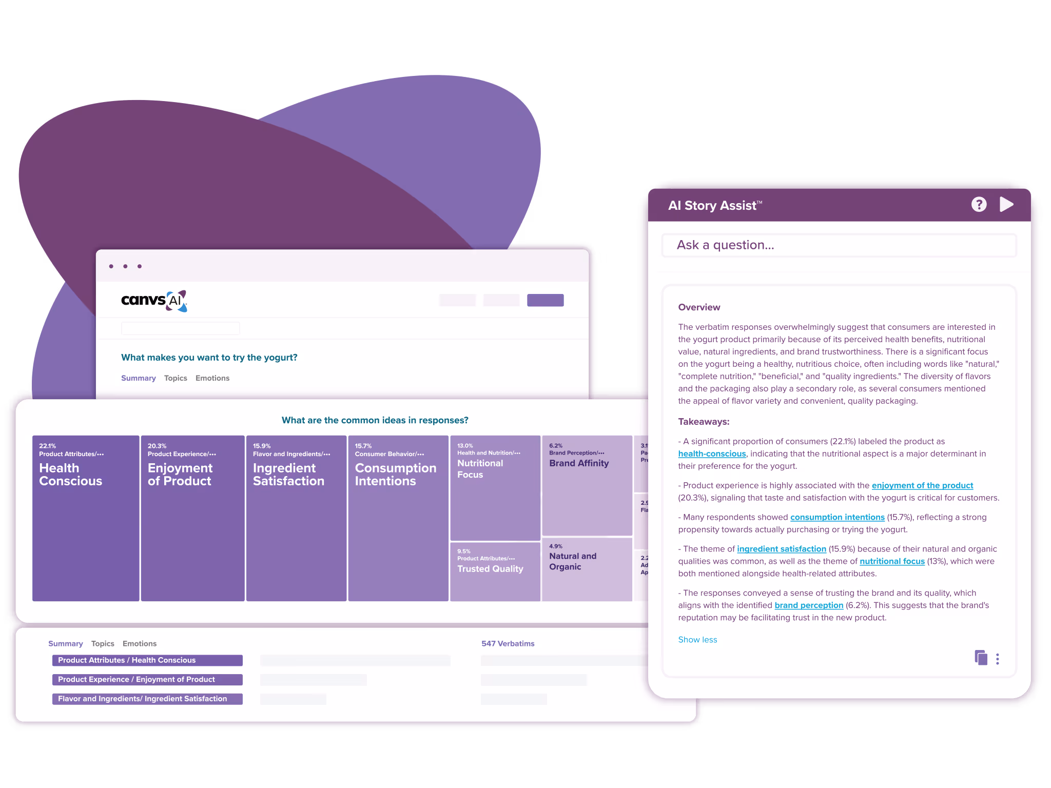 AI Story Assist helps you uncover insights hidden in your unstructured feedback that can answer your critical business questions. This super intelligent research assistant creates transparent summaries, answers follow-up questions, and generates recommendations to supercharge your insights discovery.