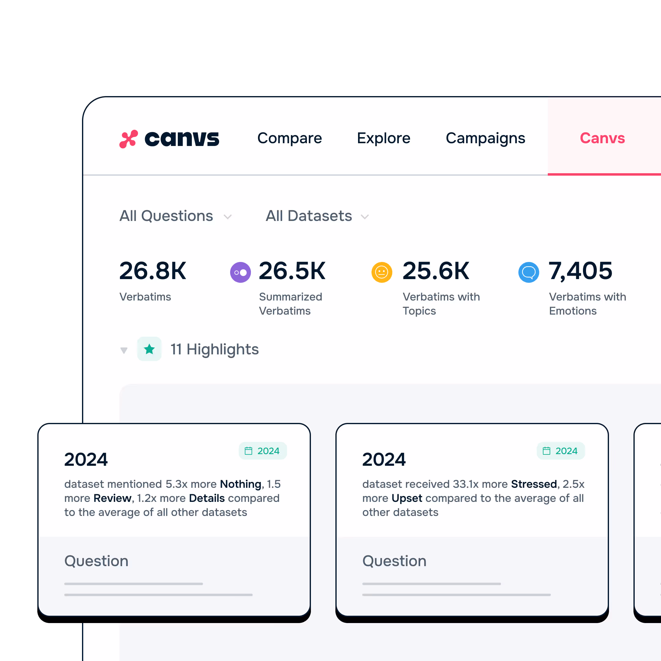 Internal feedback reveals shifts before they surface publicly. Canvs interprets large volumes of open-ended responses to uncover what’s changing across segments and over time.