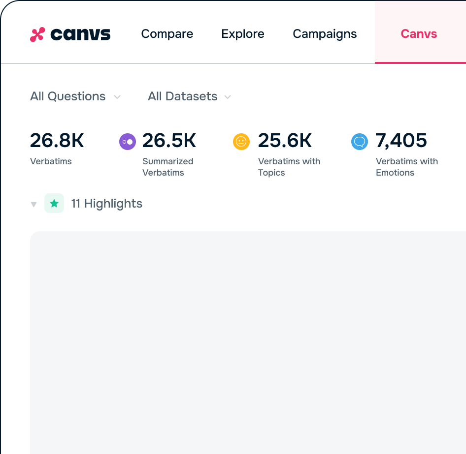 Today, Canvs powers insight across industries. From customer experience and product feedback to employee engagement and brand research. Wherever there’s customer feedback, Canvs can help make it count.