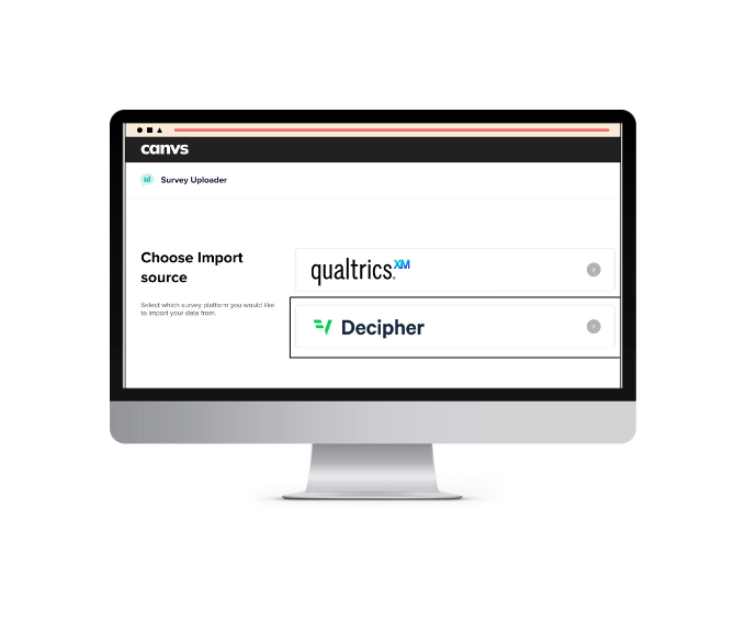 The connectors to both Decipher and Qualtrics are now available for all Canvs MRX users by selecting the import option within the Canvs MRX Uploader.