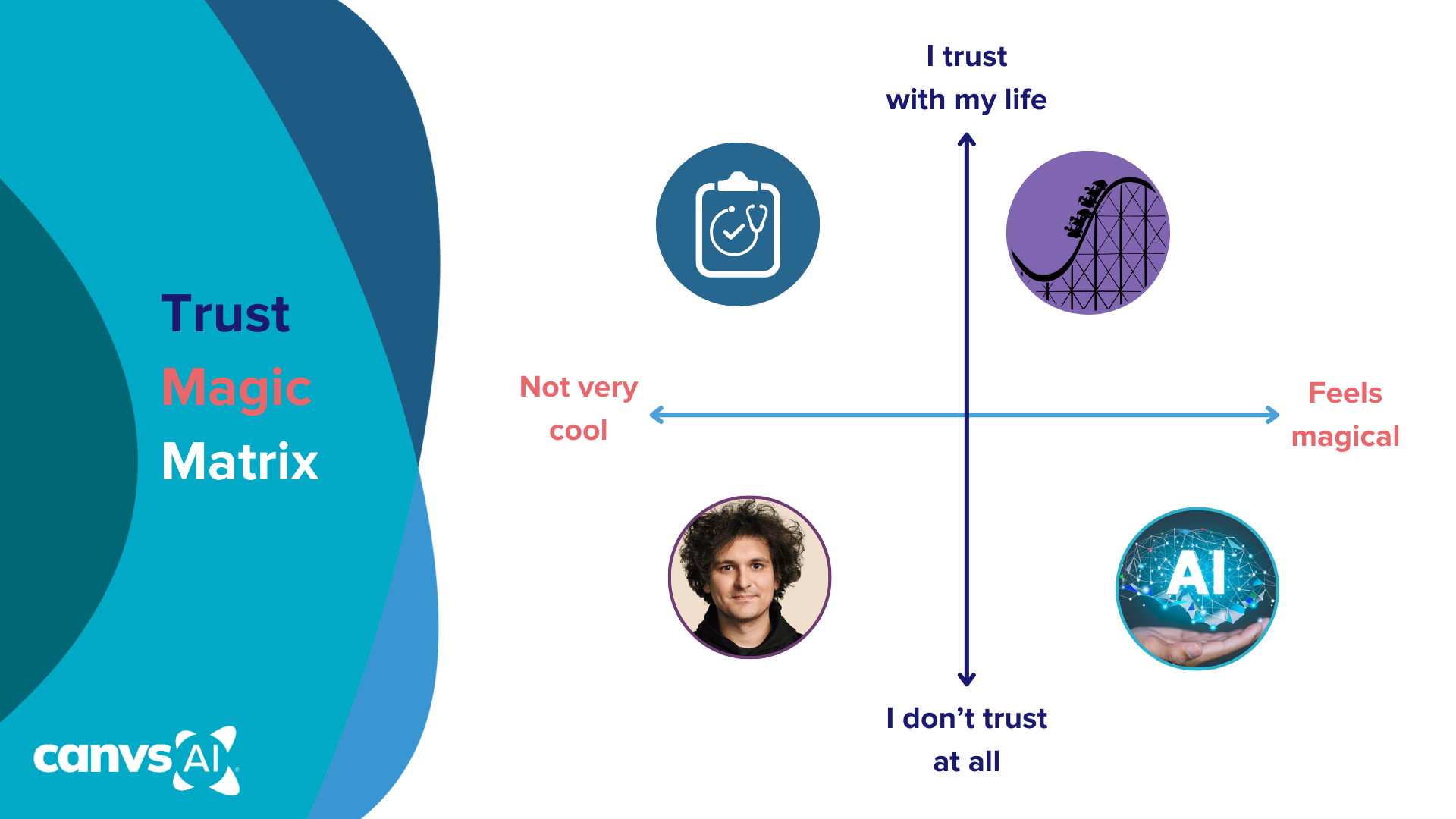 Most current AI applications unfortunately sit in the "magical but low trust" quadrant. The capabilities are incredibly impressive, but there are still too many "hallucinations" and potential inaccuracies to go all-in just yet.