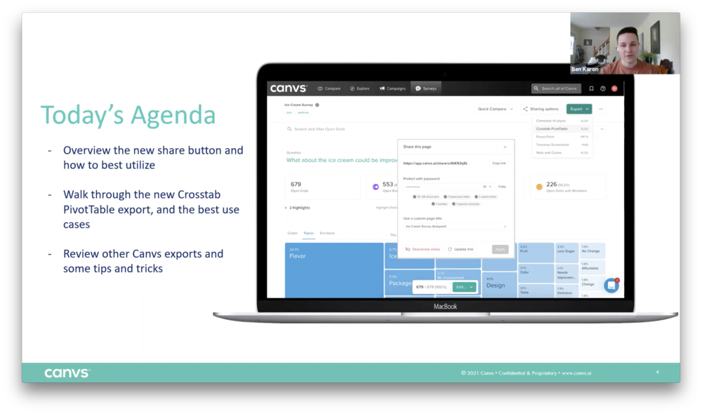 New Canvs Features Webinar: Share Buttons, PivotTables, and Exports