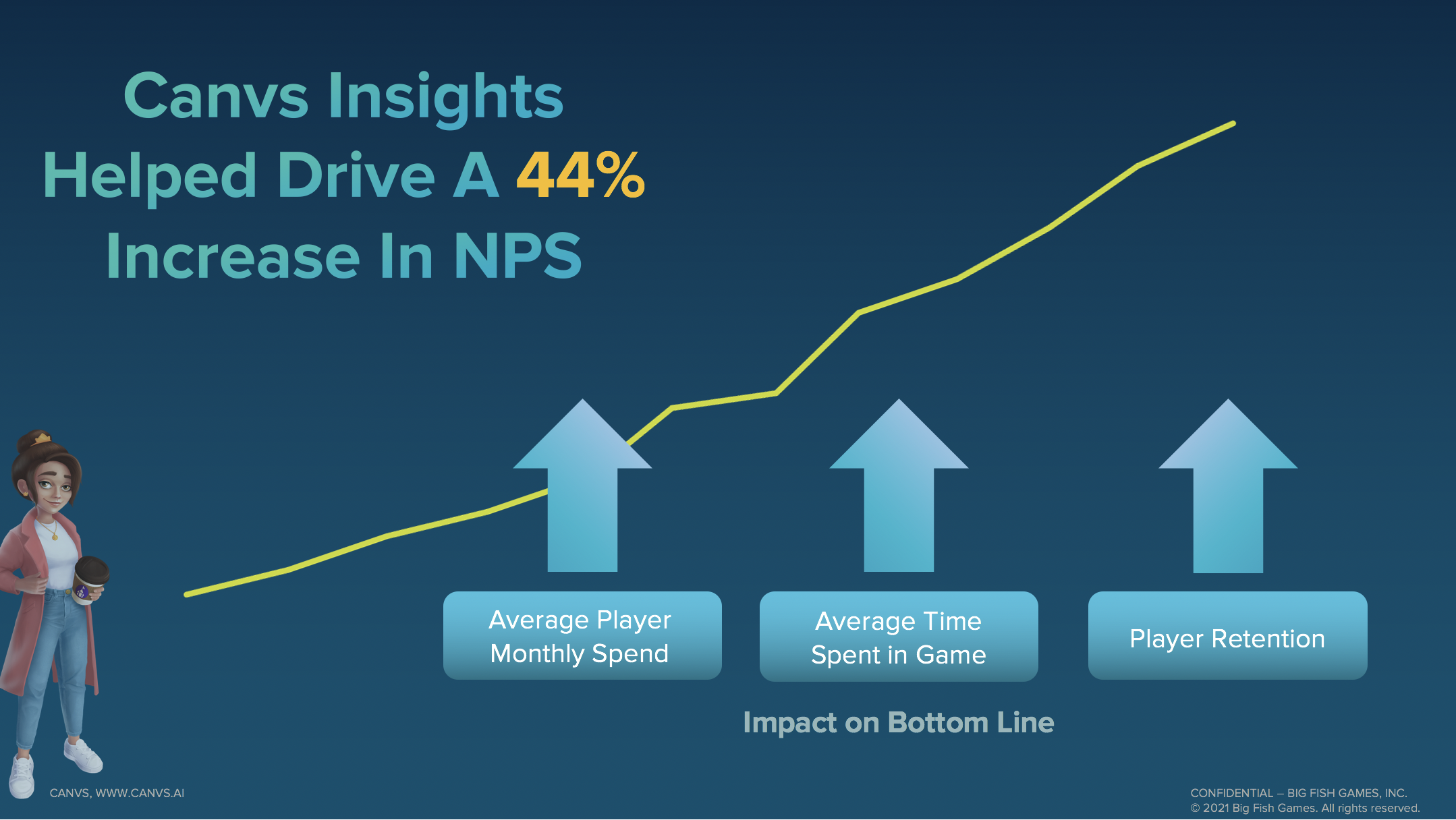 Last week, Big Fish Games presented alongside Canvs AI at The Market Research Event (TMRE) in Nashville, TN, one of the largest gatherings for consumer insights professionals. In their talk, Big Fish Games shared an amazing case study of how they were able to analyze unstructured text data from player NPS surveys to improve the experience in their new EverMerge game.